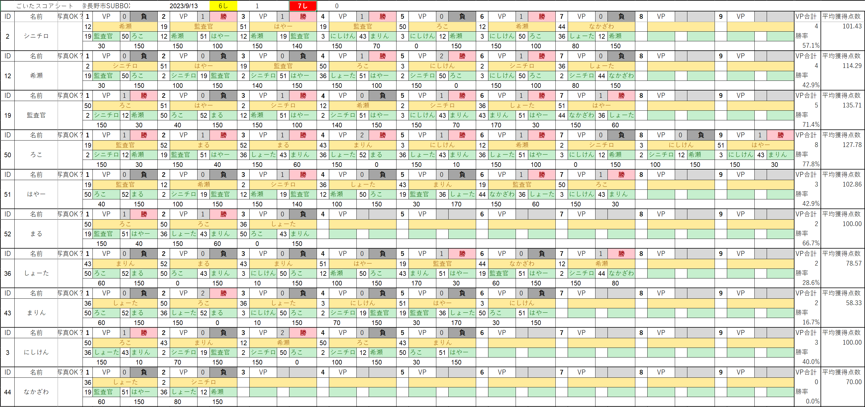 | まりん | 7 | 3 | 42.86% | 3 | 12 |